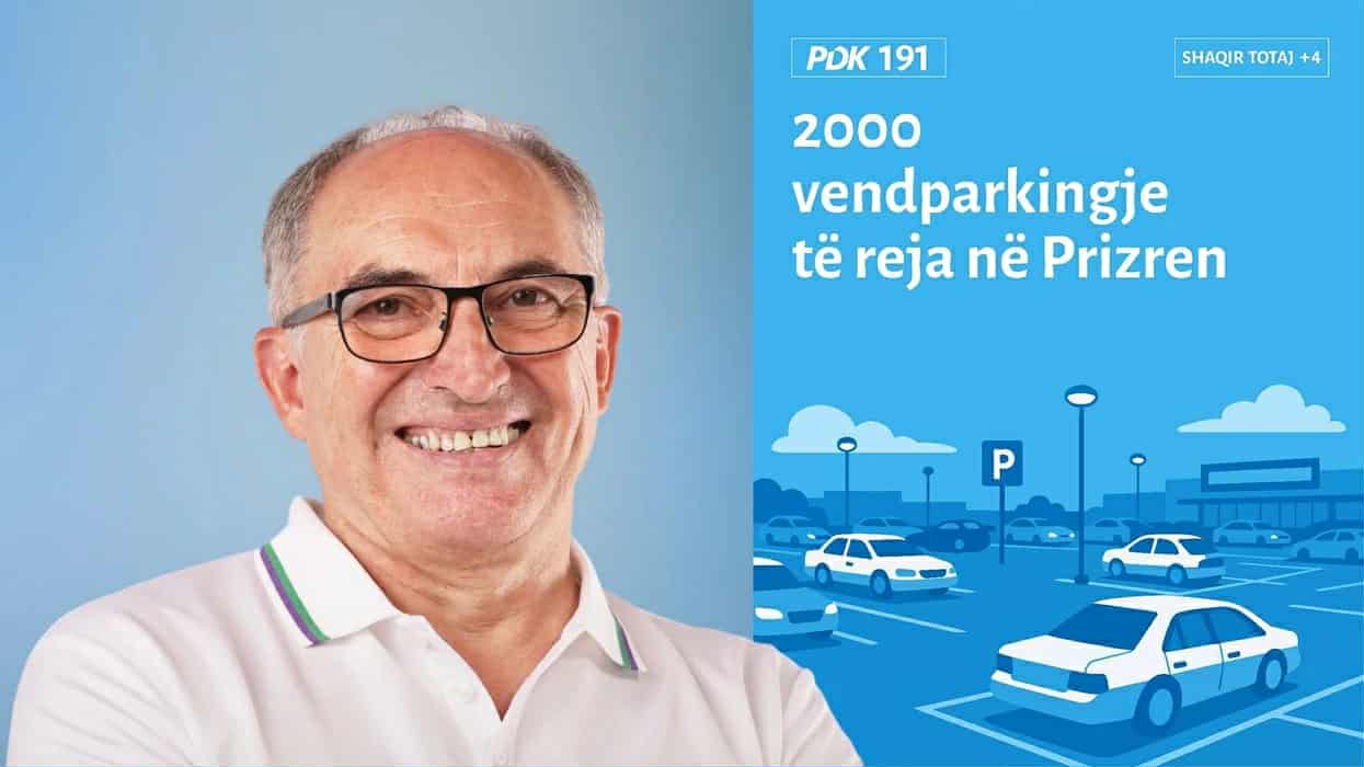 Një nga sfidat më të mëdha urbane të Prizrenit, mungesa e parkingjeve, po merr zgjidhje përfundimtare. Kryetari i Prizrenit, Shaqir Totaj, ka bërë të ditur se ka nisur puna për adresimin e çështjes së parkimit në qytet, me synimin për të krijuar rreth 2 mijë vendparkingje të reja në katër lokacione strategjike.